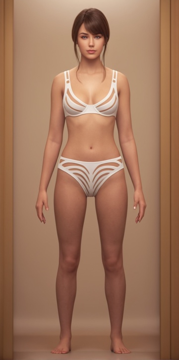 I asked AI to make her look like a real woman. This time the source image was 3000×6000 pixels, 300 DPI and without shading. The results are good.